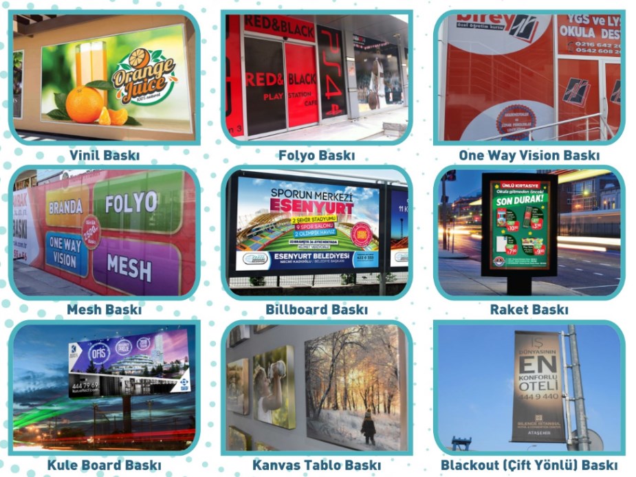 Görsel reklam ürün ve hizmetlerinin, pazarlama ve satış potansiyeline yadsınamaz katkılarının olduğu günümüz koşullarında, dijital baskı teknikleri de her geçen gün yenilenmektedir. Kıvanç Bayrak Sanayi, yeni nesil baskı makinaları eşliğinde, bilgisayar ortamında tasarlanan her türlü grafik tasarımlarınızı dilediğiniz materyaller üzerine uygulayarak hayata geçiriyor. Her türlü folyo, branda, mesh, one way vision ve benzer siparişleriniz için hizmetinizdeyiz.